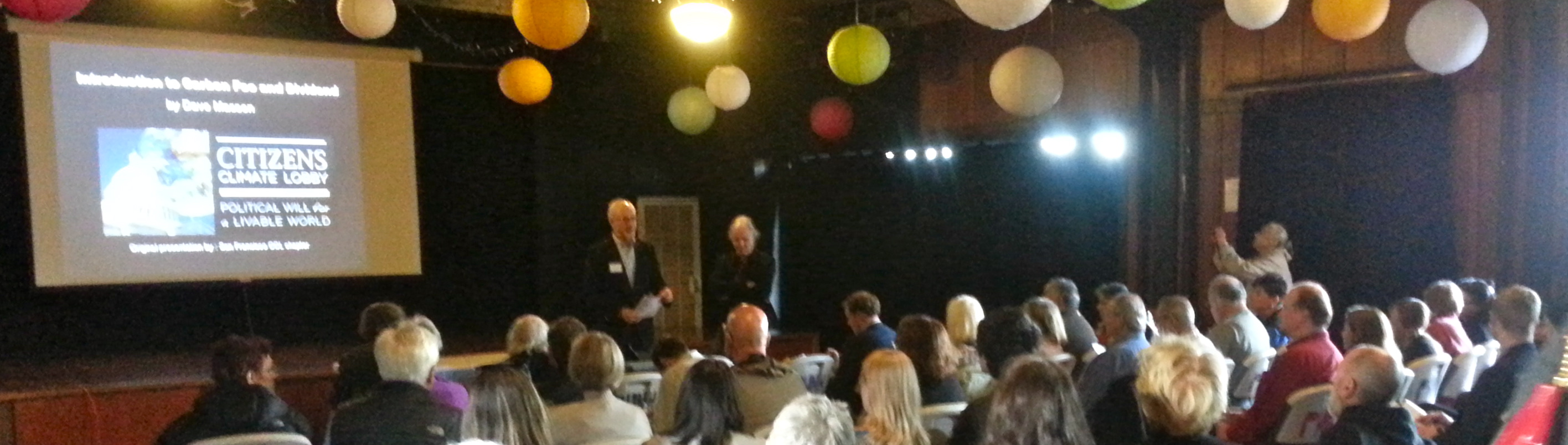 Citizens Climate Lobby carbon fee slideshowOIL. The upper safety limit for atmospheric CO2 is 350 parts per million (ppm). We’ve just hit 400 ppm. Dave Massen (SF group leader) and Jeff Whittington of Citizens Climate Lobby (click here for recent NY Times article about CCL) want to cut greenhouse gas emissions and promote transition to a green energy economy through carbon fee and dividend:  taxing carbon pollution from fossil fuels, and returning the proceeds to American households. This idea is an alternative to cap and trade, which now exists in California. After the presentation (photo above by Maulik Shah), Club members voted to sign on to a letter urging Congress to enact carbon fee & divArt Agnos and Rick Weltsidend legislation.